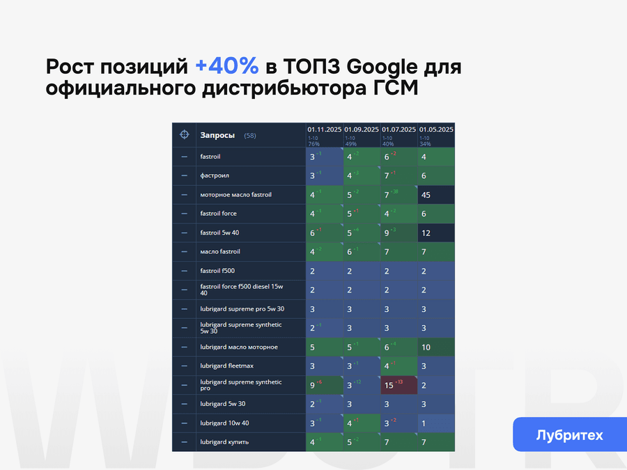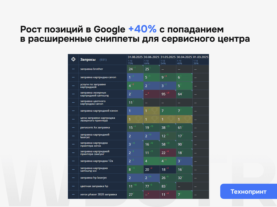 Поисковая оптимизация не заканчивается после внедрения базовых правок. Важно понимать, как сайт меняется после доработок, какие страницы усиливаются, где появляется рост, а где нужна следующая итерация работ. Поэтому мы не просто внедряем изменения, а контролируем их эффект и переводим сайт в режим системного развития.